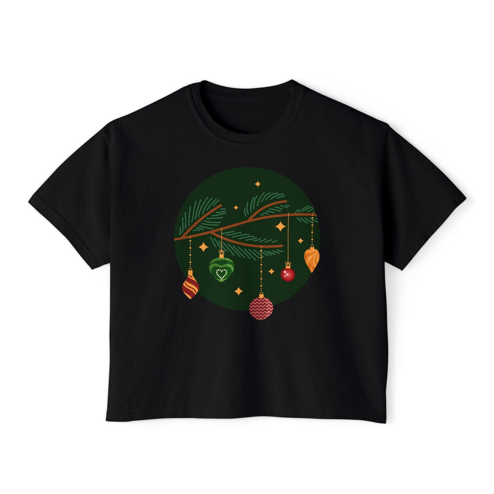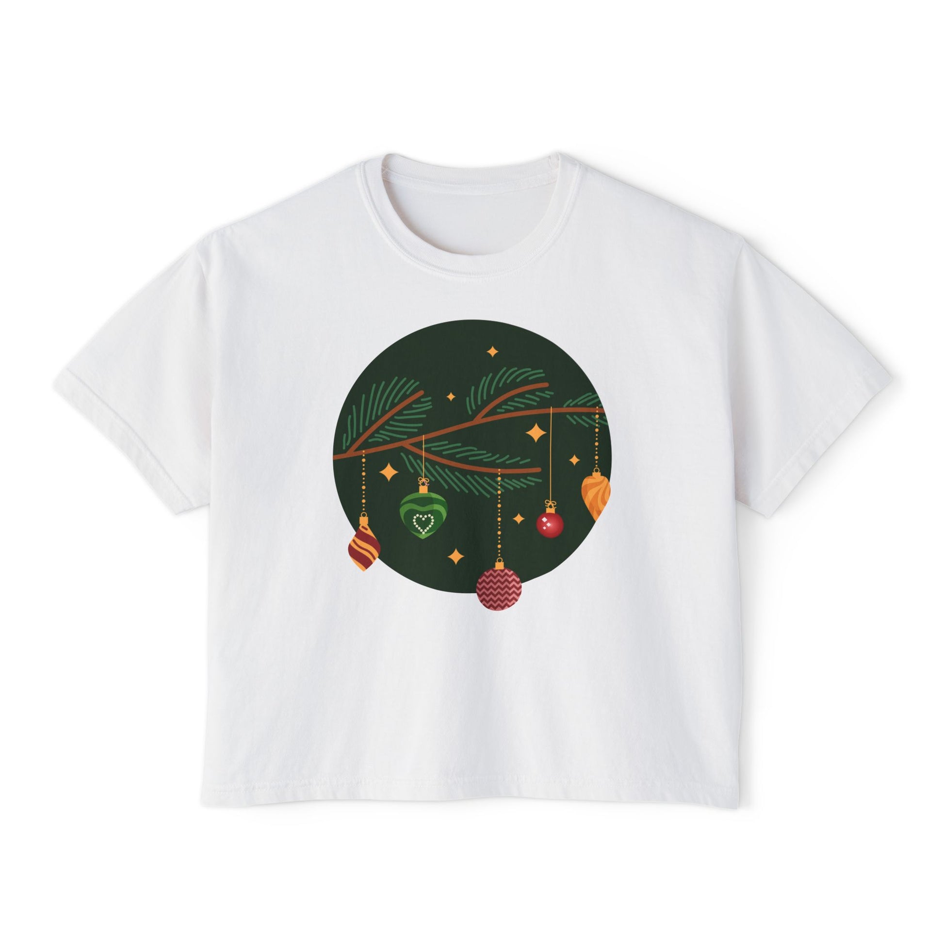 Christmas Boxy Tee — Holiday Branch & Baubles Women's Tee