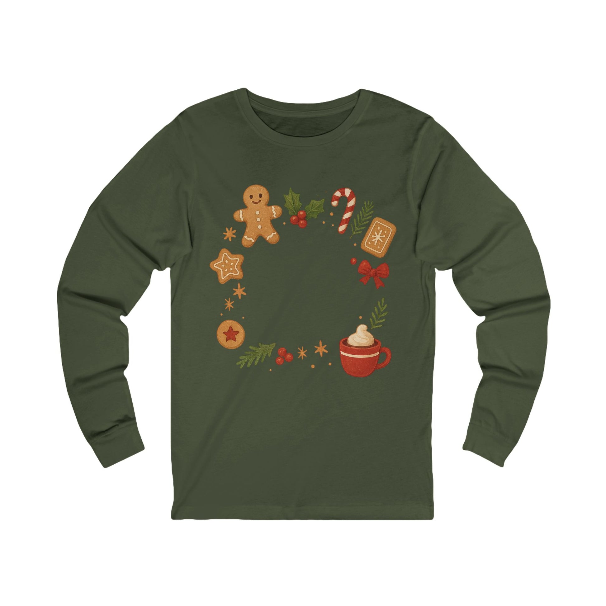 Christmas Cookie Wreath Long Sleeve Tee — Holiday Gingerbread & Cocoa Graphic