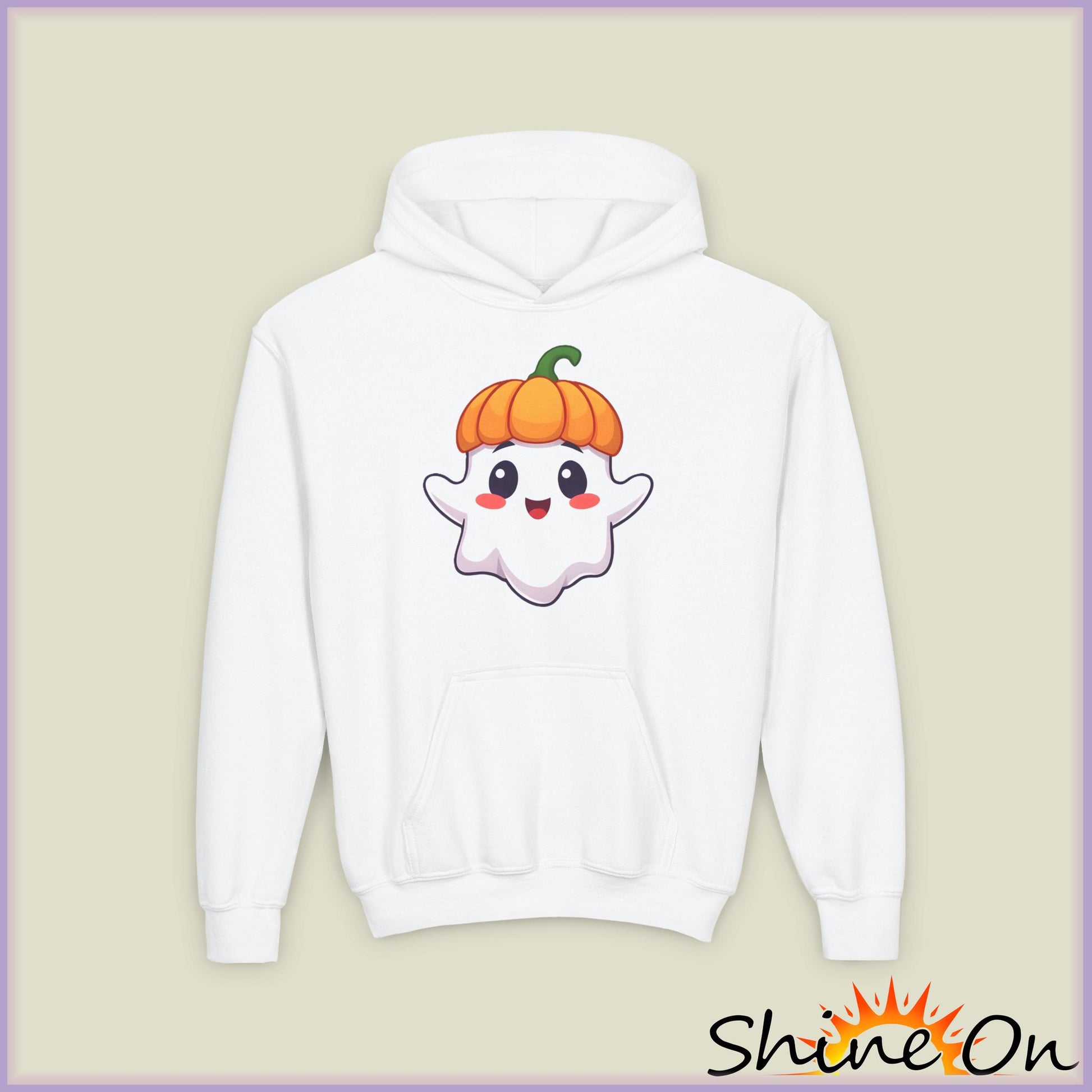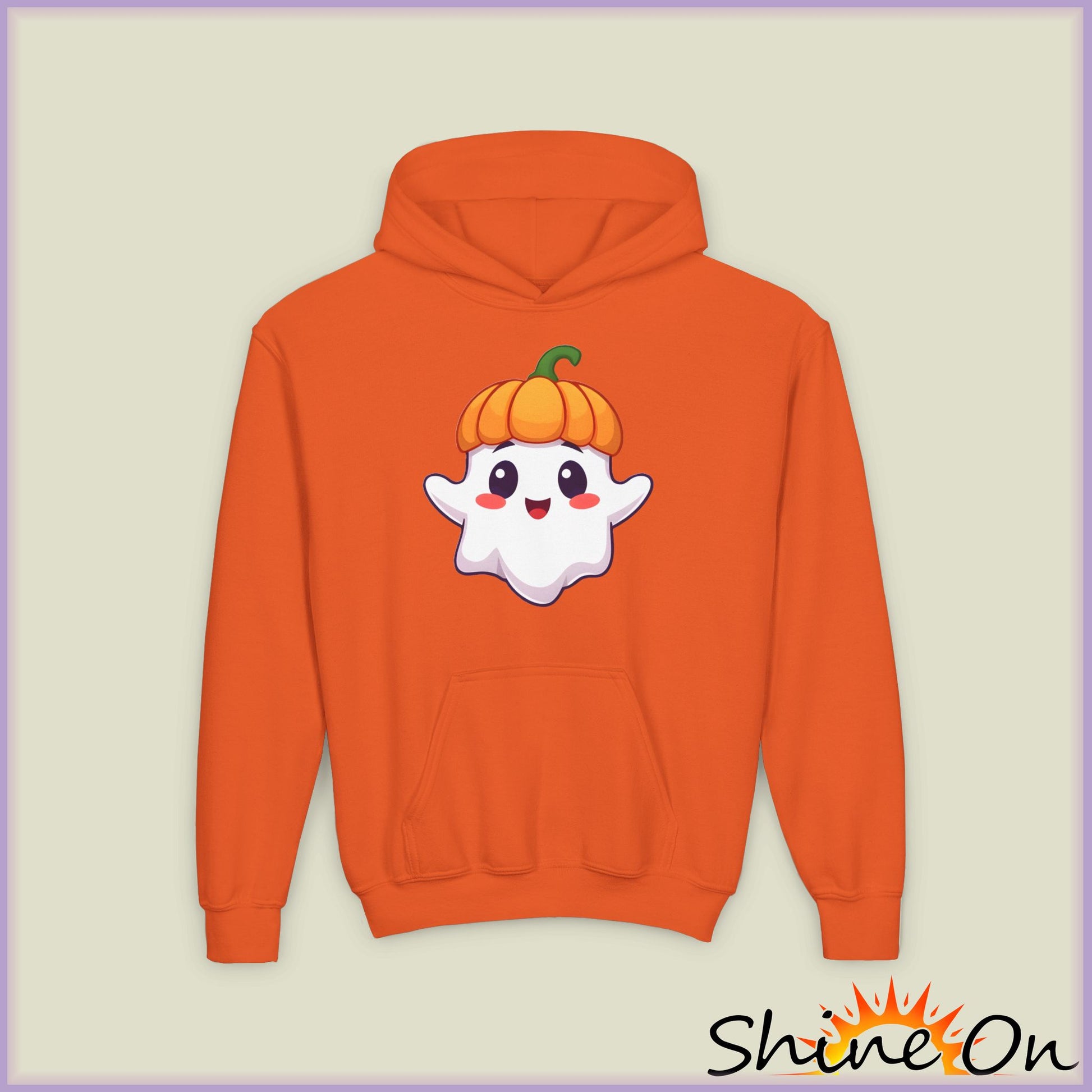 Youth Hoodie - Cute Pumpkin Ghost, Halloween Sweatshirt, Kids Costume, Fall Apparel, Trendy Hooded Sweatshirt