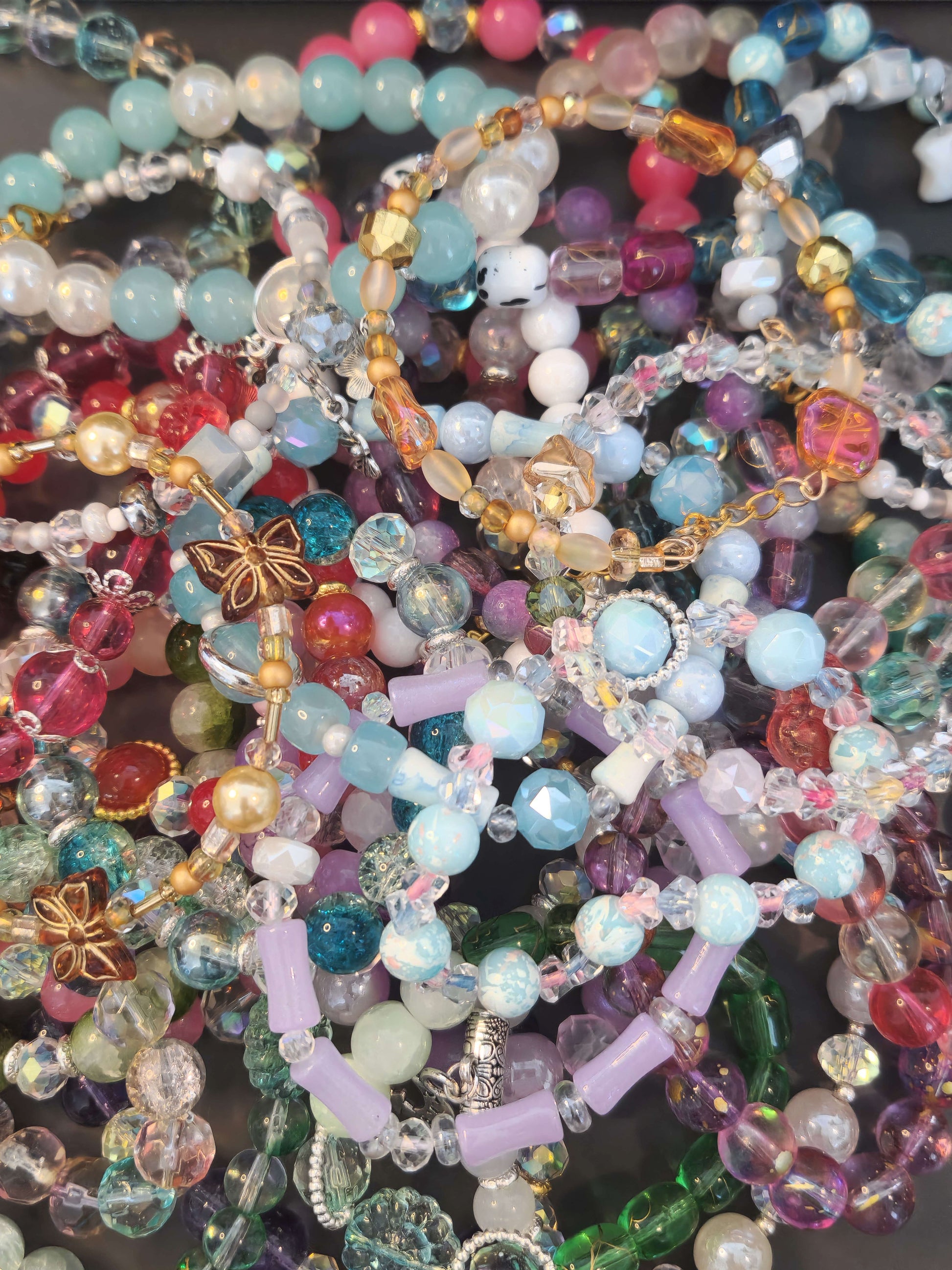 Vackra armband gjorda på glaspärlor och charms i diverse färg, storlek och design. Obs, mystery bag! Man väljer alltså inte armband själv!