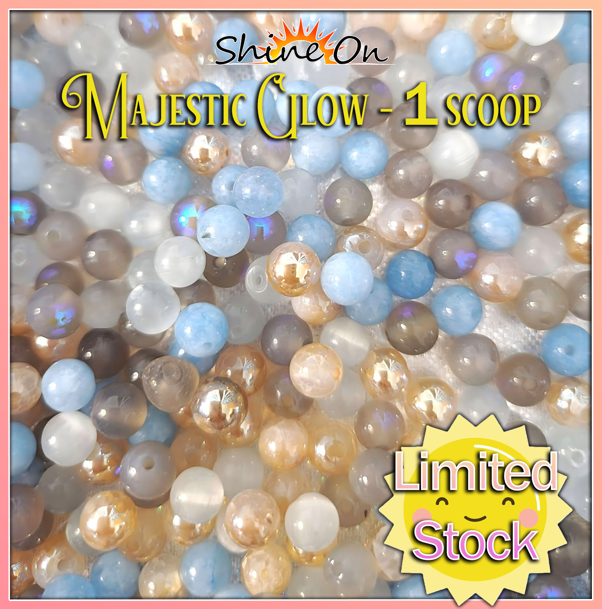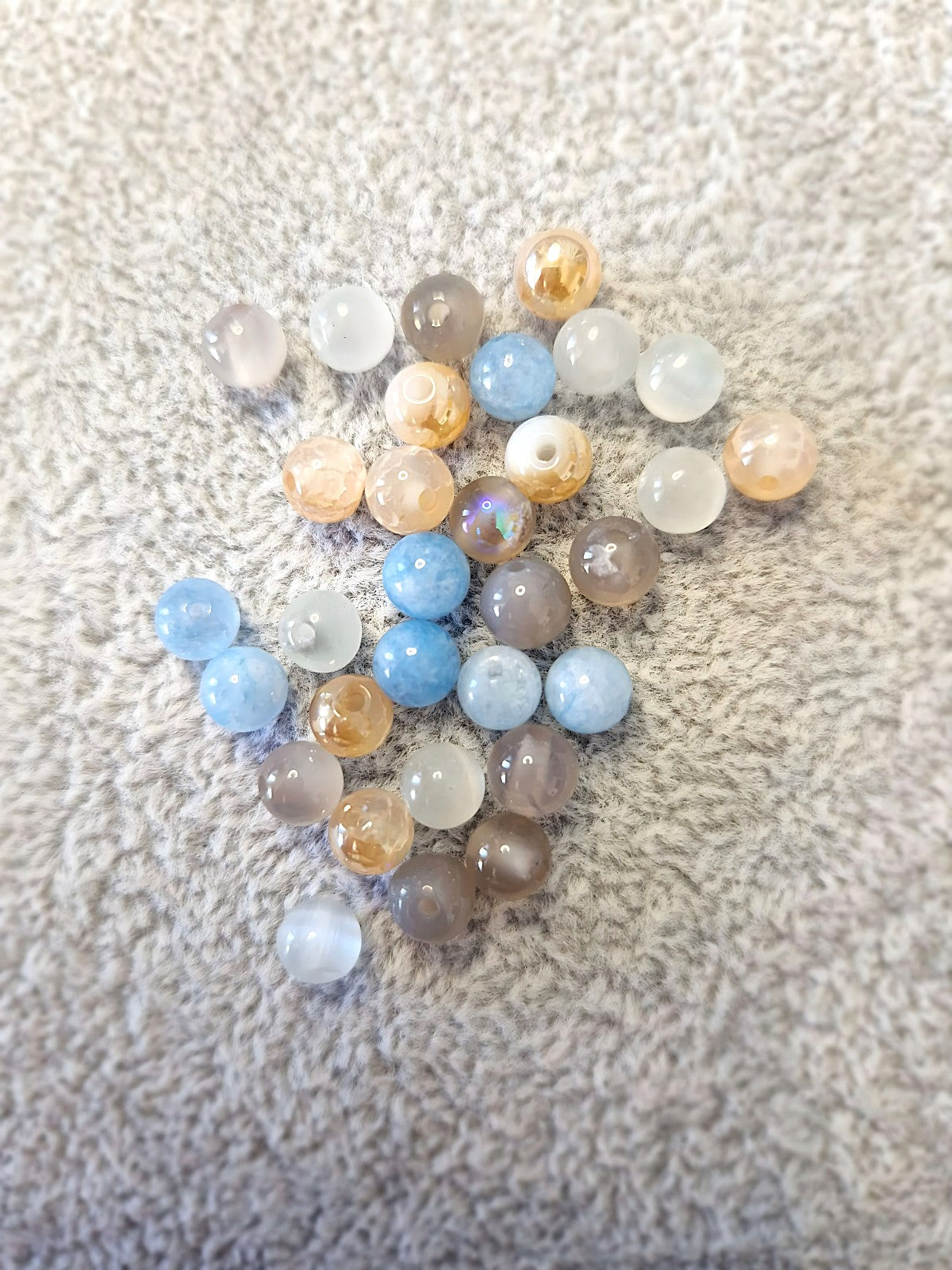 A mix of natural crystal beads in size 6mm. White selenite, champagne and snowflake agates, gray labradorite and aquamarine kalcedon. 1 scoop is roughly 25 - 30 beads.