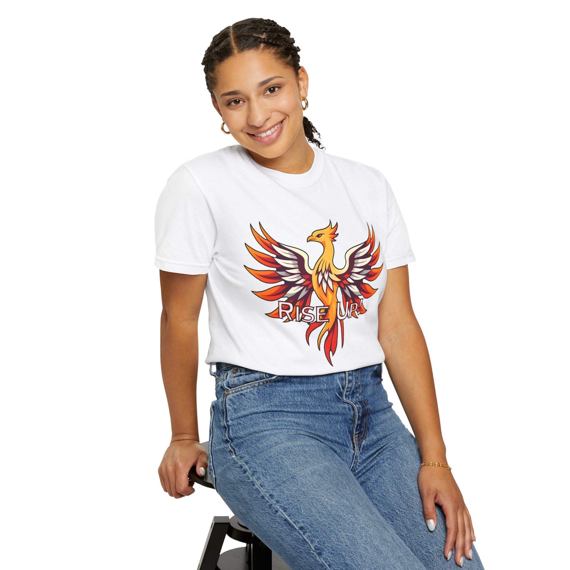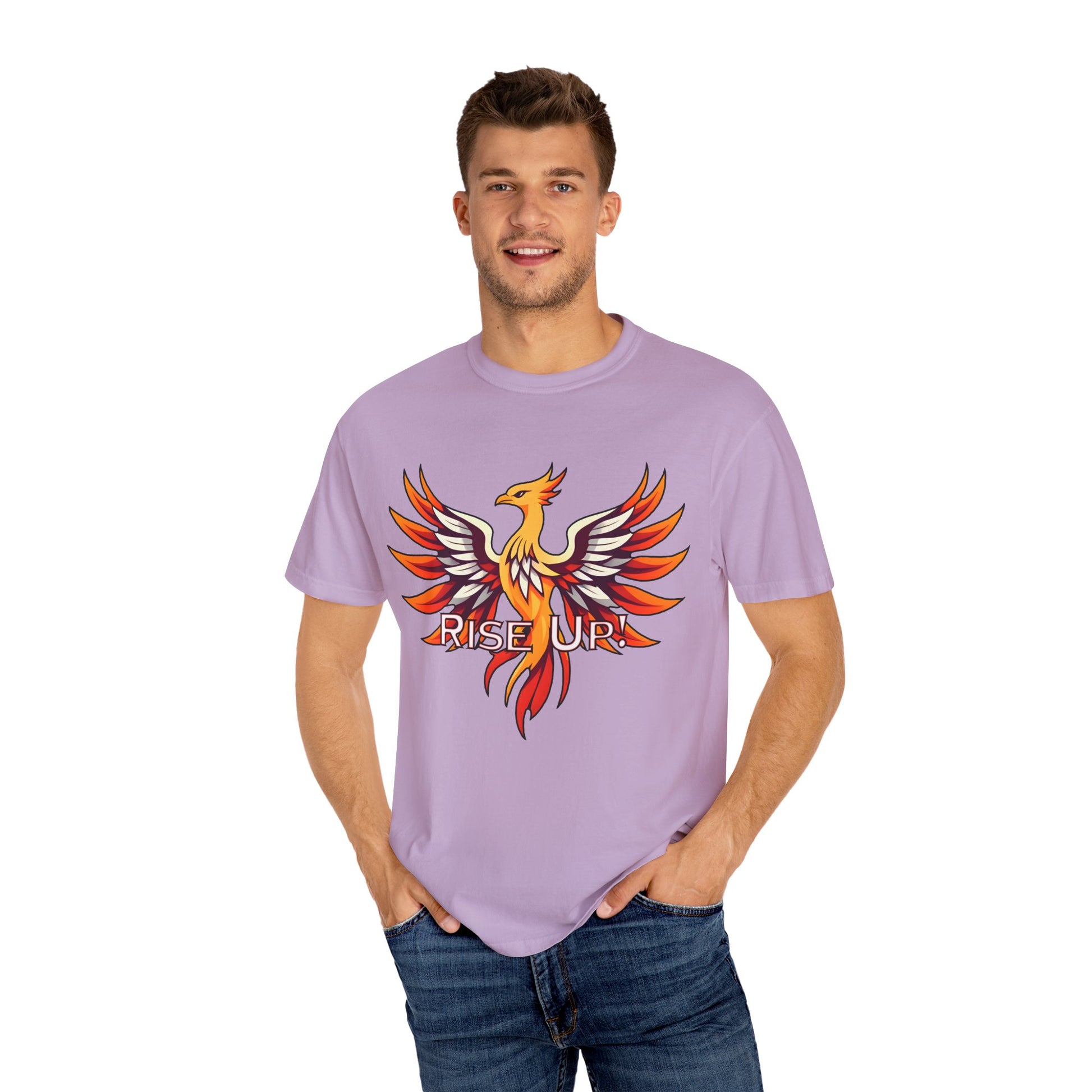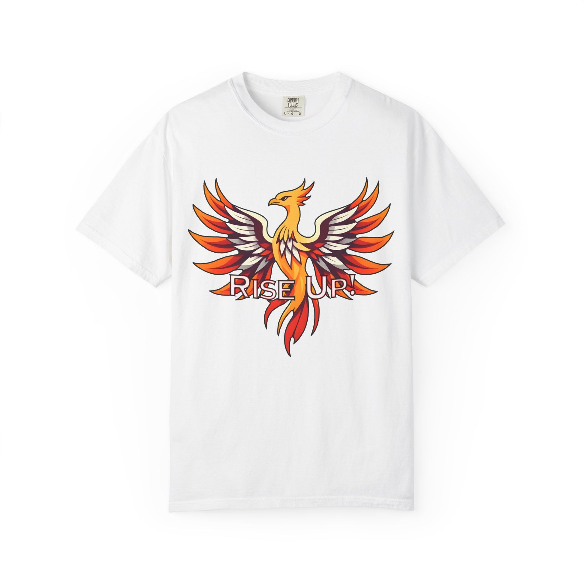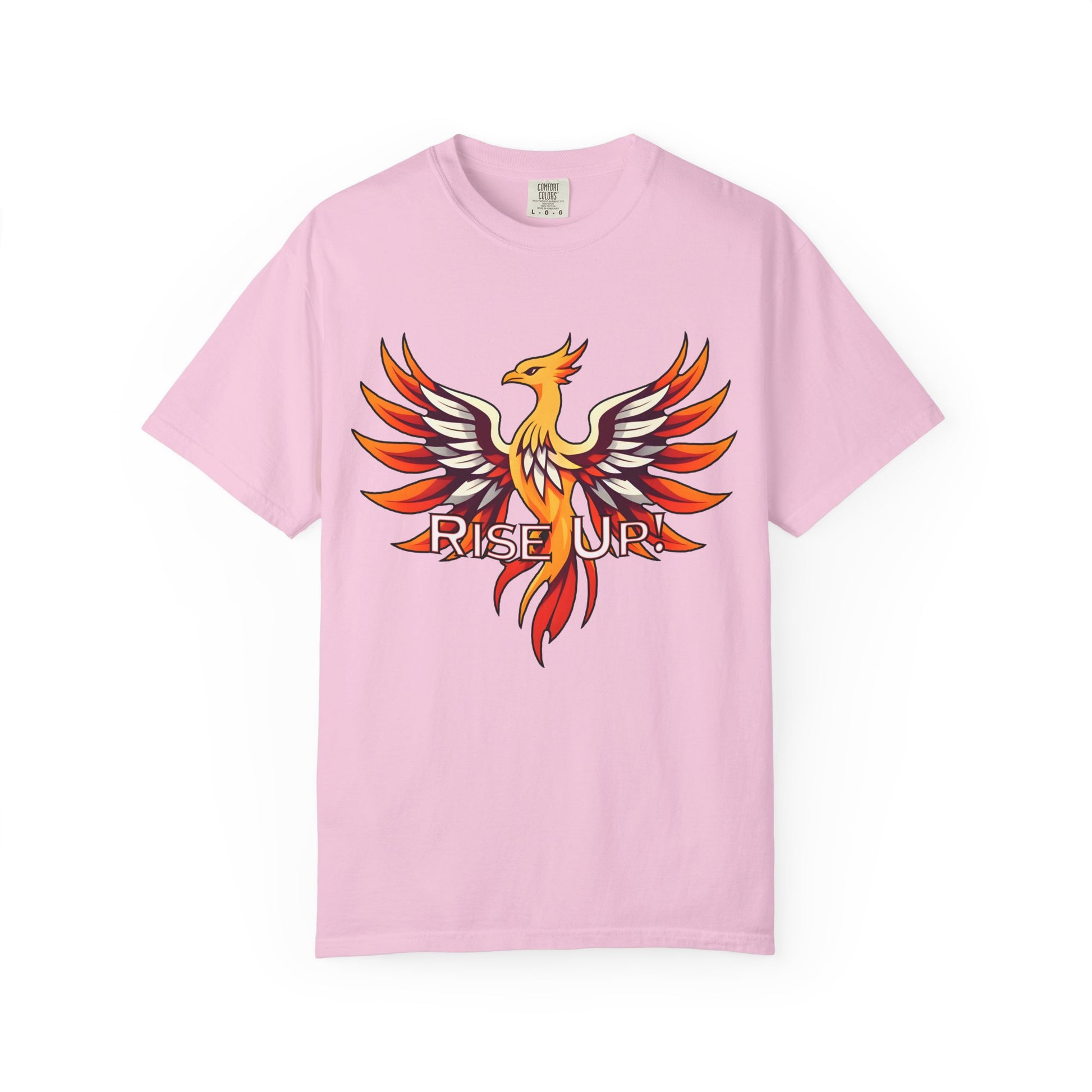 Elevate your everyday style with this vibrant unisex t-shirt, designed to make a statement. Featuring a breathtaking phoenix graphic and the inspiring phrase "RISE UP", this tee encourages wearers to embrace their inner strength. Made from ultra-soft, garment-dyed fabric, it offers unrivaled comfort while boasting a relaxed fit, perfect for casual outings or cozy nights in. Ideal for anyone seeking to express their individuality, it’s suited for both men and women, making it a versatile addition to any wardrobe. This t-shirt is perfect for gifting during special occasions such as birthdays, graduations, or even just as a pick-me-up for a friend. Celebrate resilience and empowerment with this artistic piece that can brighten up anyone’s outfit!